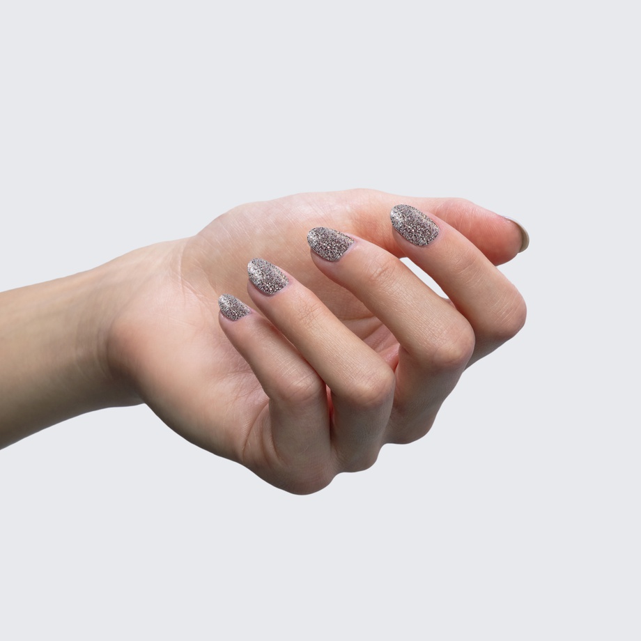 The rose gold glitter of this super shimmery, translucent polish always tells it like it is.